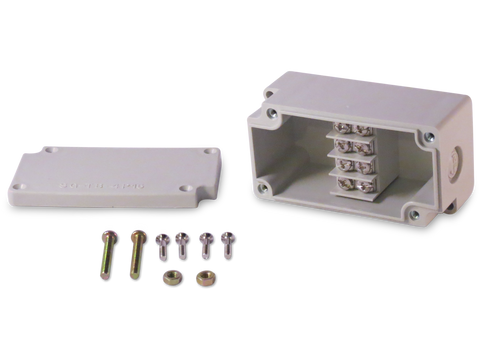 Featuring a Polycarbonate Clear Cover, integrated with 4 circuit barrier style terminal block this ABS Terminal Enclosure is frequently used in large facilities or equipment where routine inspection is required. This junction box is compact and useful in tight spaces. Featuring molded knockouts and captive screws allowing easy installation and removal of cover.