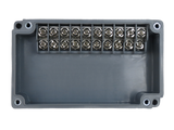 Featuring a Polycarbonate Clear Cover, this ABS Terminal Enclosure is frequently used in large facilities or equipment where routine inspection is required. This junction box with integrated side mounted terminal block with 10 positions is very useful for wiring trunking applications and control connections. This terminal enclosure features molded knockouts and captive screws allowing easy installation and removal of cover.